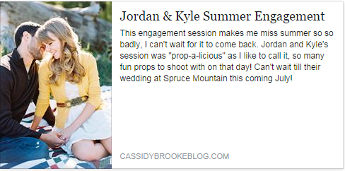 Today Long Ago Love has the honor of being featured on (fabulous) photographer Cassidy Brooke's blog. Head